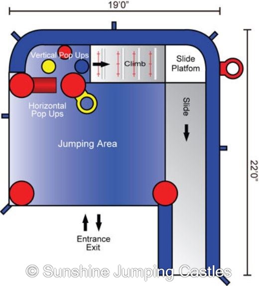 Offers a nice big slide, pop ups and Basketball ring inside and out.