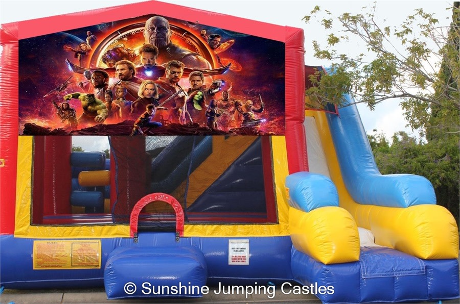 C7 Castle Combo with Slide and Infinity Wars Banner - 7 HOURS HIRE $270.00, 4 HOUR HIRE $240.00