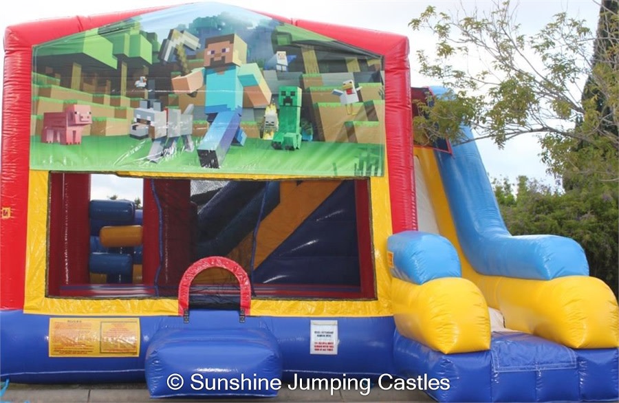 C7 Castle Combo with Slide and Minecraft Banner - 7 HOURS HIRE $270.00, 4 HOUR HIRE $240.00